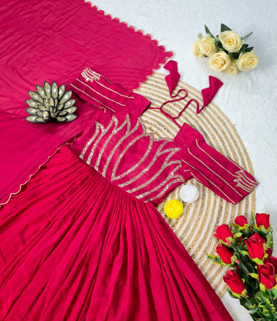 *🪷Festive Collection🪷* ⚜️ *Launching Super Hit Collection, Designer & Sequance work Gown With Duppata. A Beautiful Blend Of elegance and Charm For This Wedding and festival.* ⚜️ ◻️ *GOWN*▫️ *FABRIC :- * Vichitra silk with Sequance work *▫️ *SIZE :-* *Full-Stitch *M L XL XXL*▫️ *Colour*:- 5 Colour ▫️ *LENGTH :-* 52+▫️ *FLAIR :-* 3.5 MTR▫️ *LINING :-* micro cotton ▫️ *Dupatta :-*Vichitra Silk Zari & Cut Work* ▫️ *LENGTH : -* 2.30MTR▫️ *Package Contain*: Gown+Dupatta