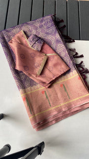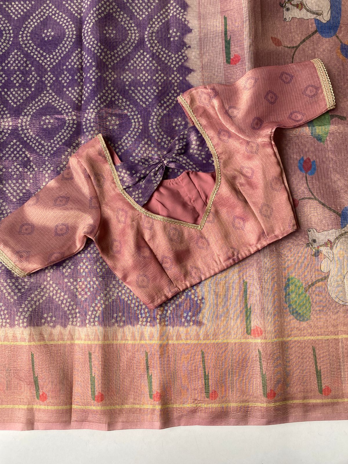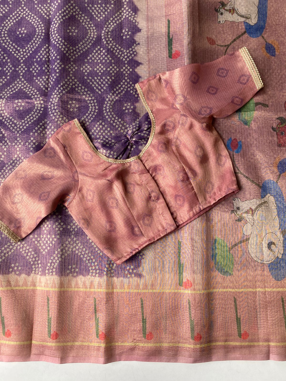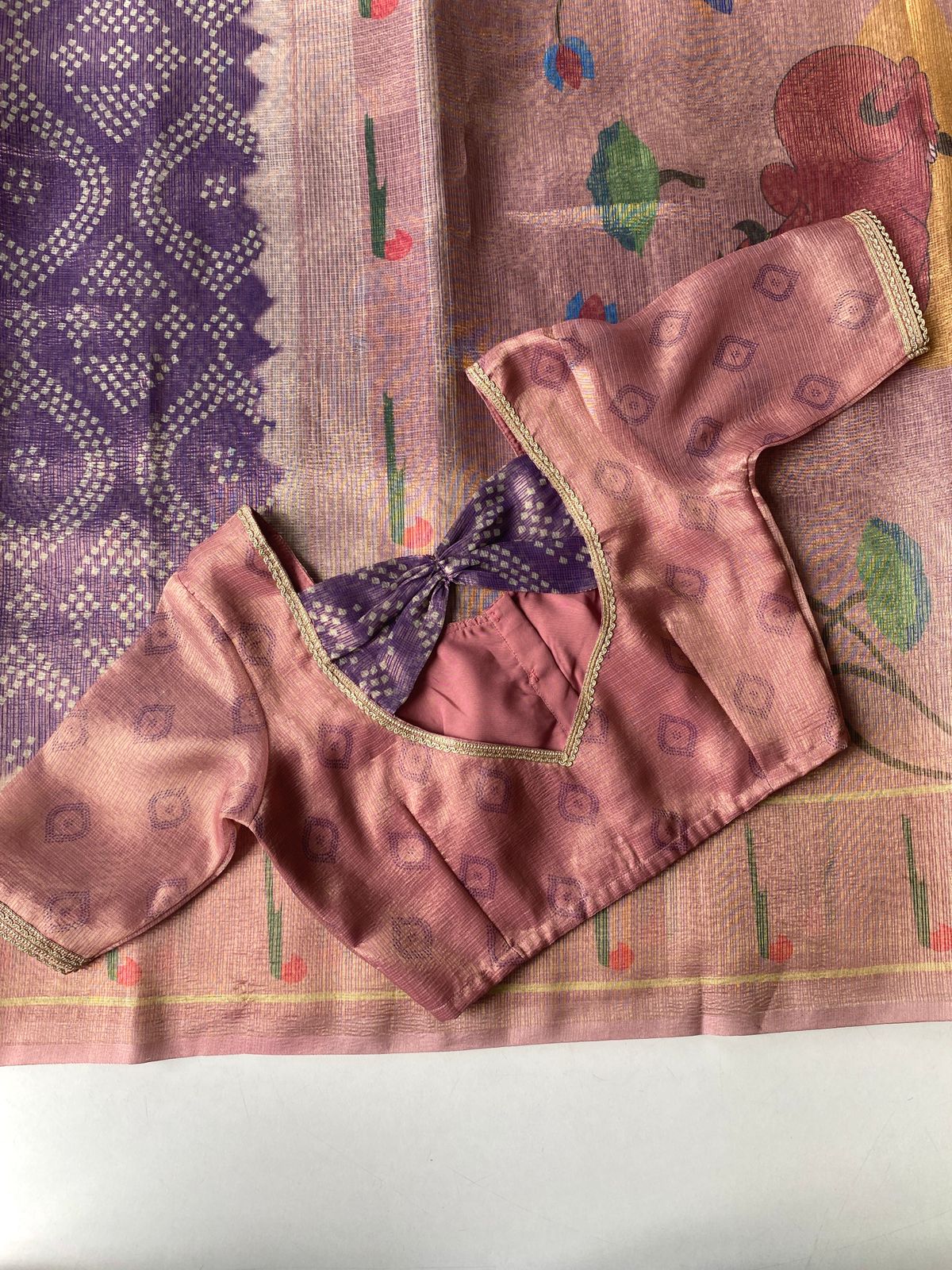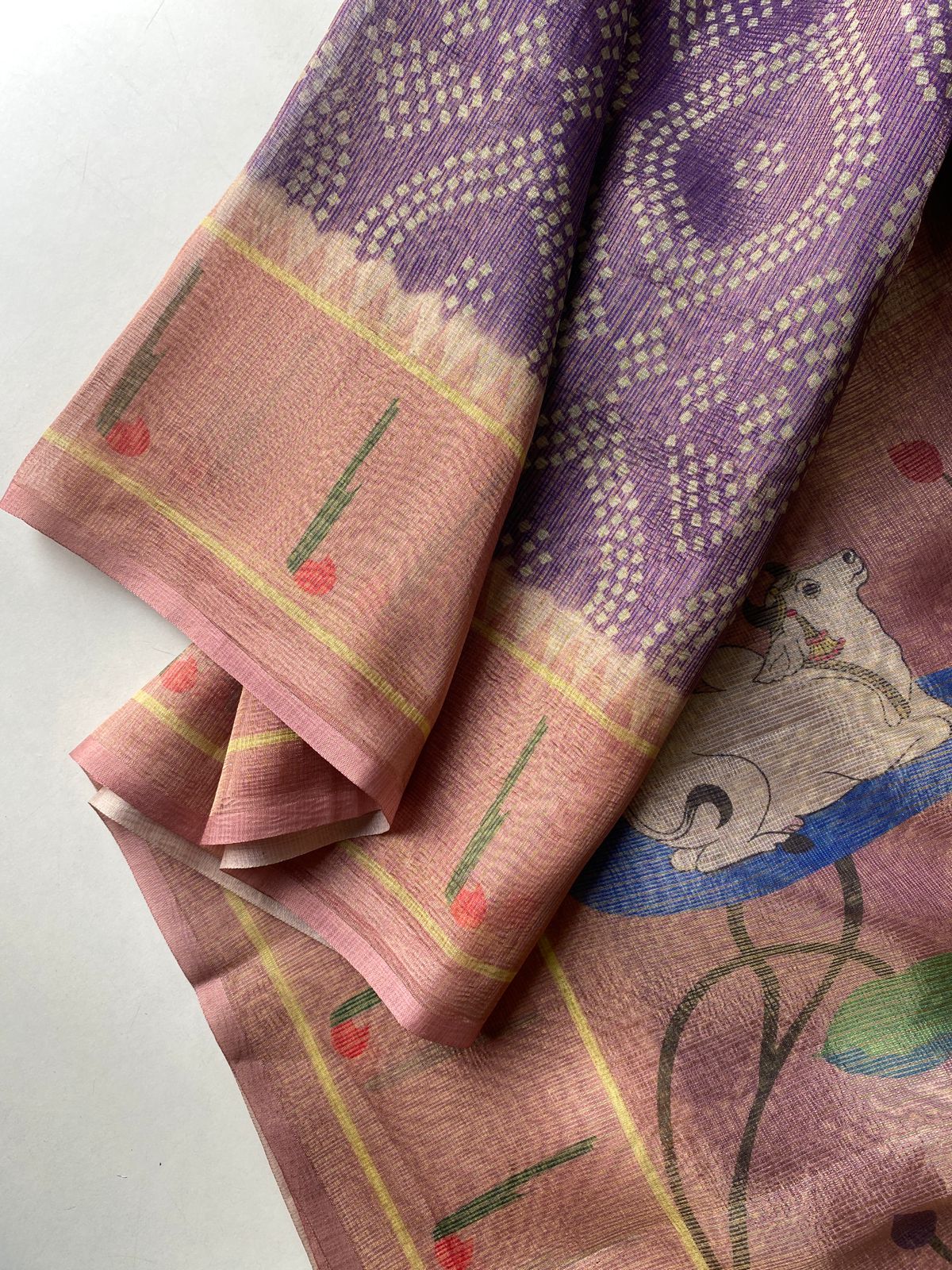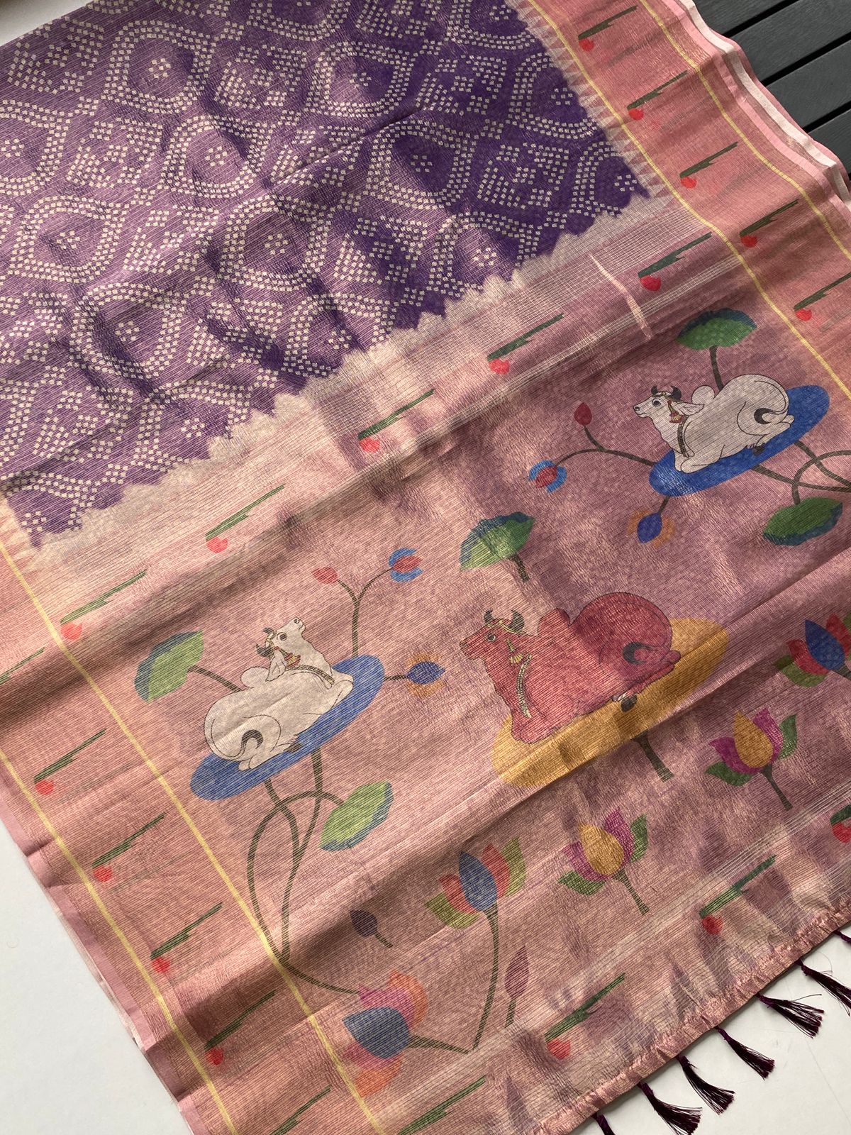 Description : Pure kota saree with beautiful paithani bandhej prints all over the saree with tassels on pallu.