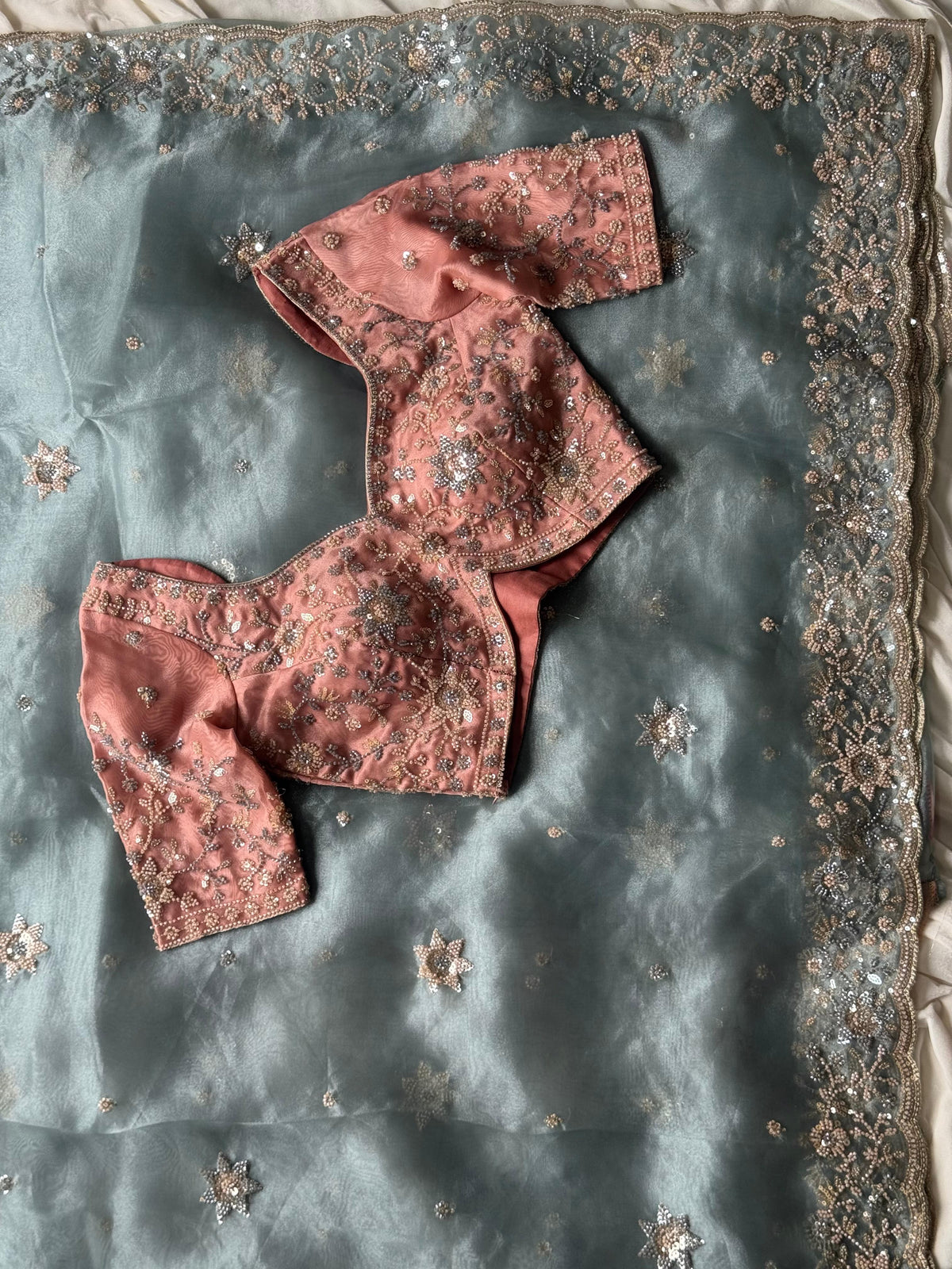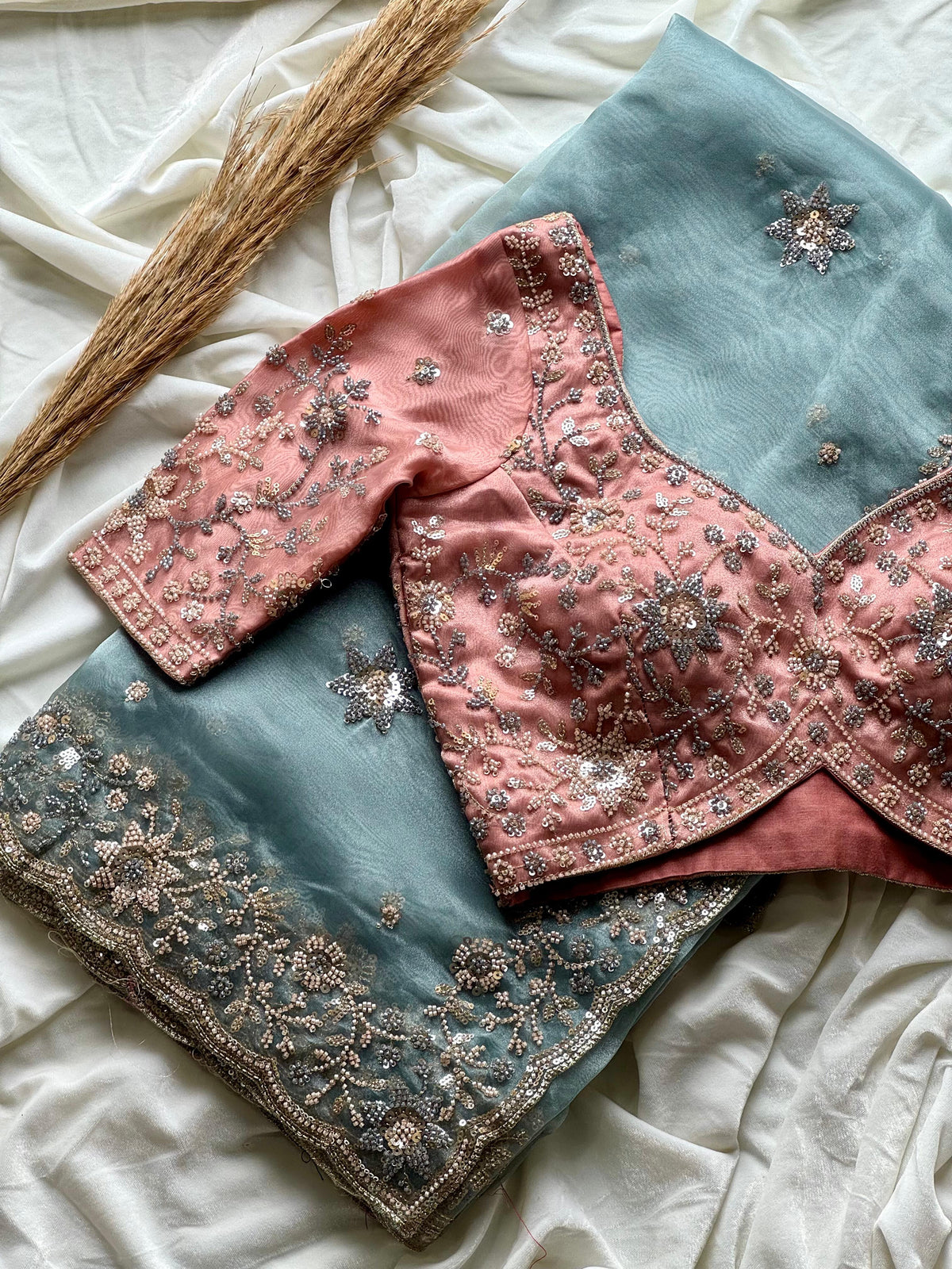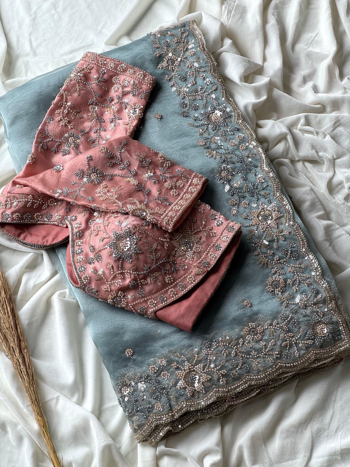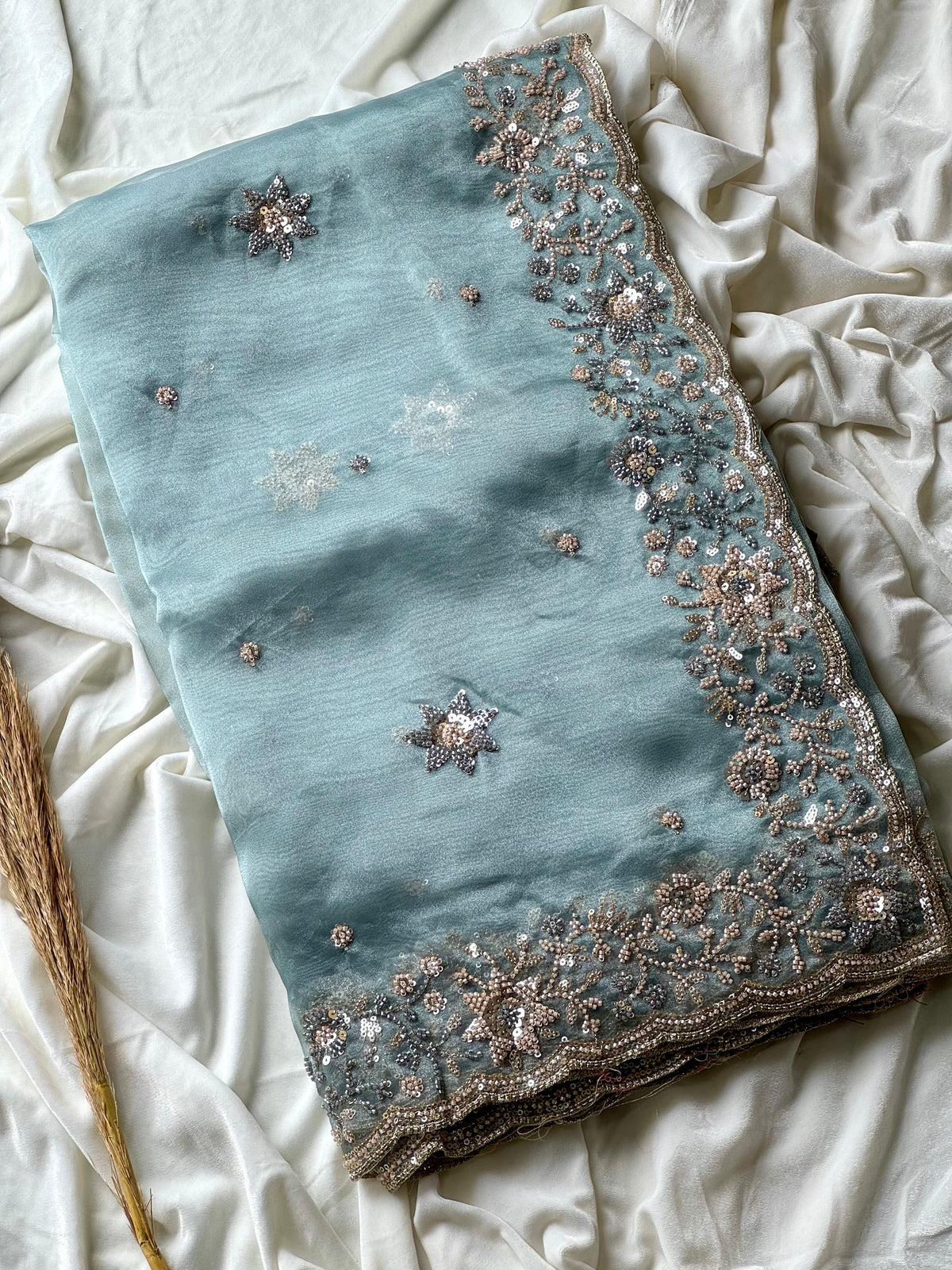 Exclusive & premium arrival 😍   #icebluesareees   *Cocktail handwork* collections fascinated in finesse too soft organza crepe silk saree with heavy pearl sequence cutdana handwork*   Absolute stunning collection with heavy Handwork