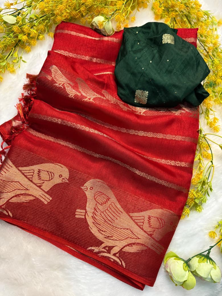 *parrot*🐦  *premium dola silk saree* **super hit premium dola JARI saree* *Original saree only same boder* *Pure dola silk with jari all over saree* *jequrd *boder same as originall boder only* *Pure and premium soft smooth only* *butti blouse same as photo* *Original Saree weight 600 gram net* *Total color 1*