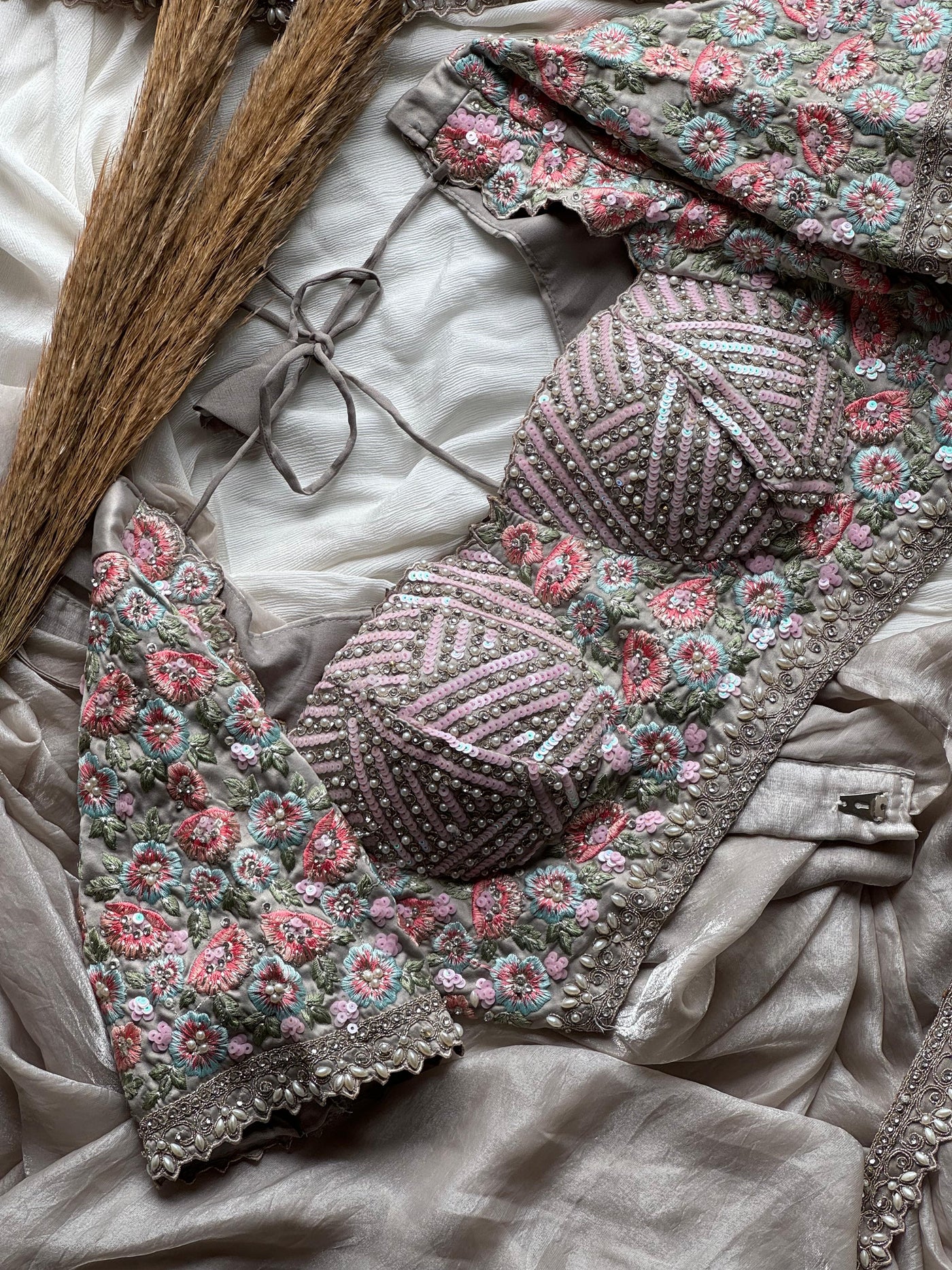 Blouse :- fully stitched sequences & pearls work blouse