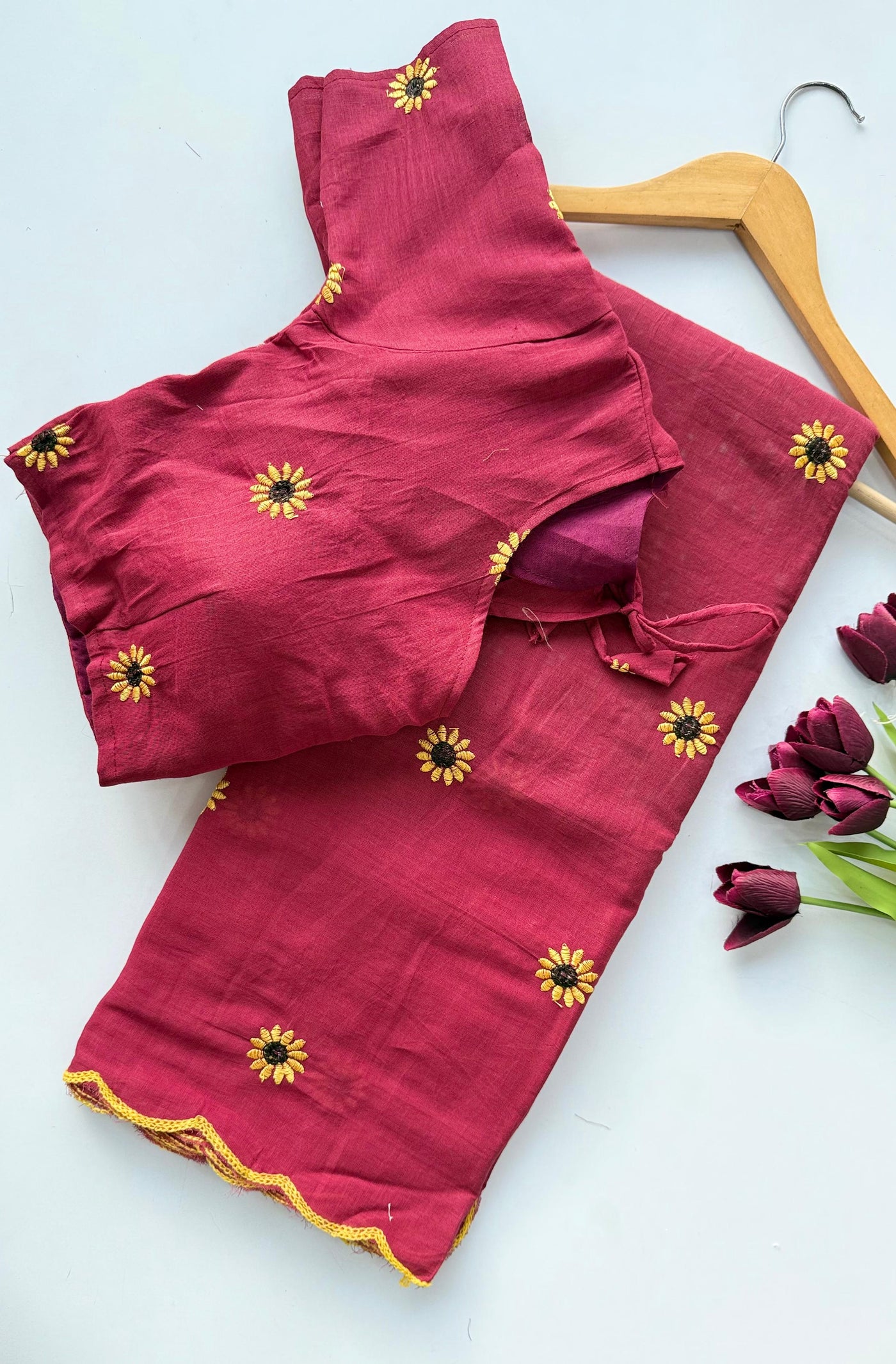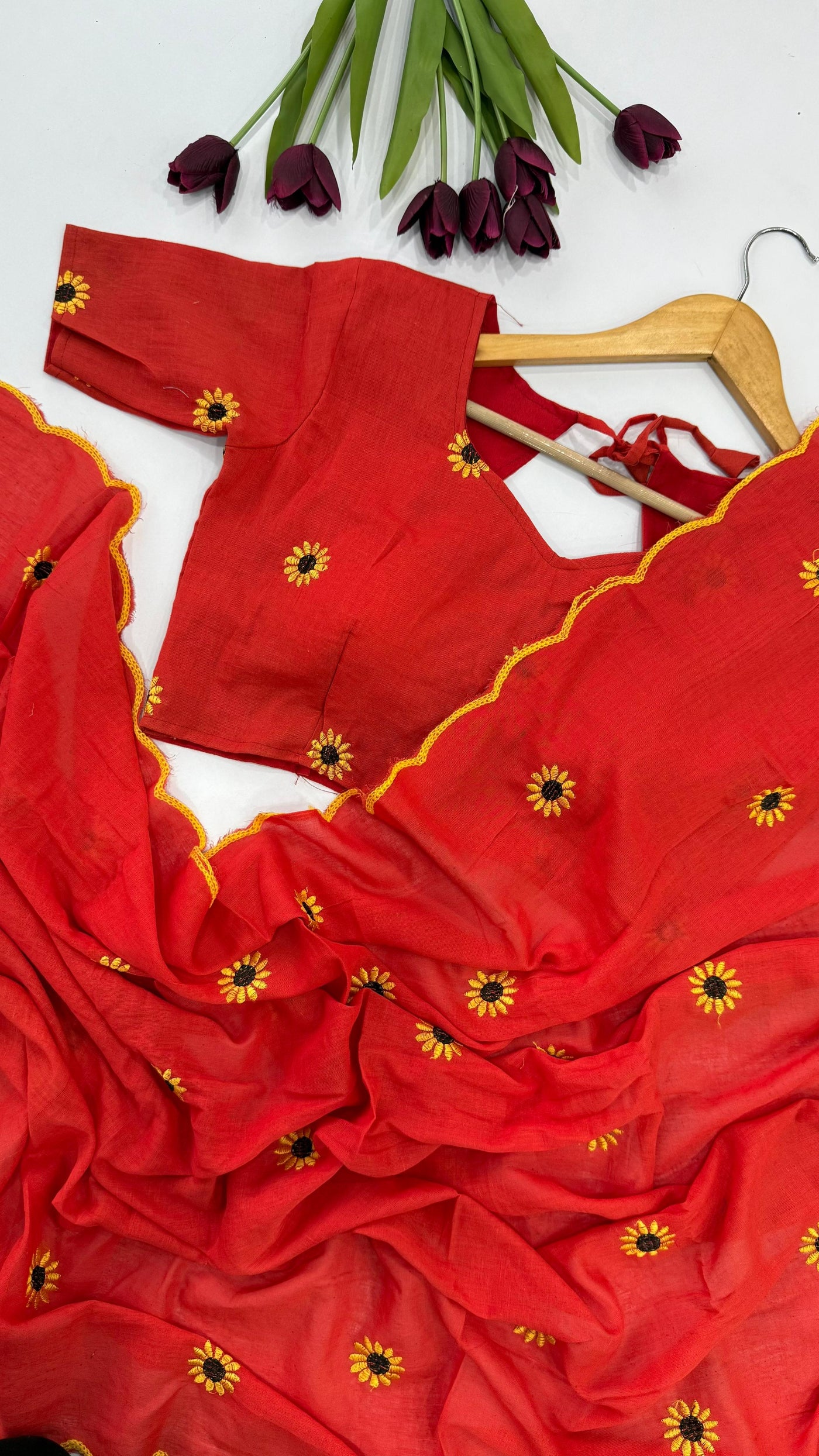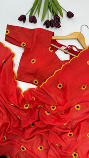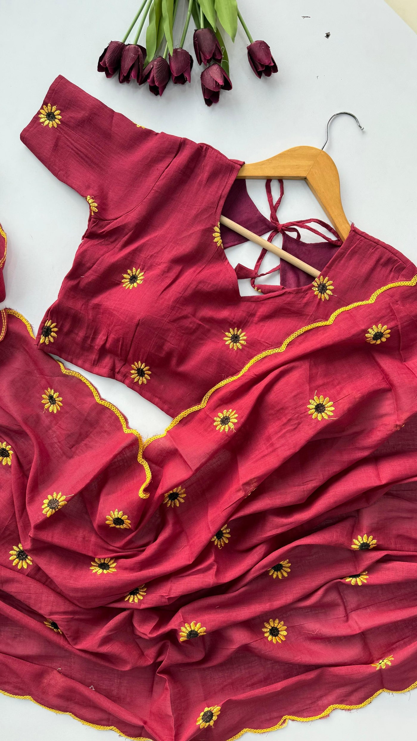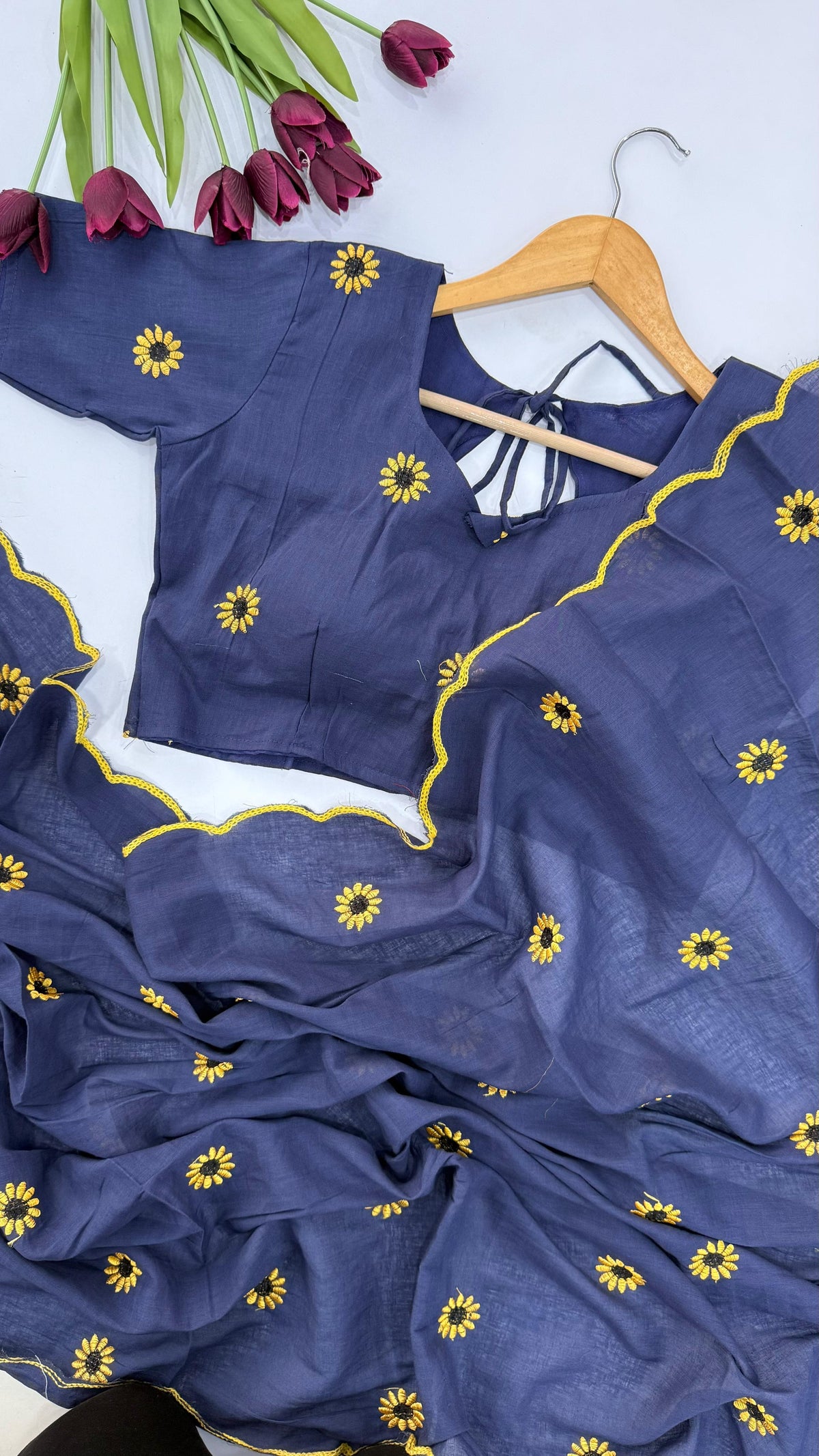 heavy pure cotton saree with complete flower work on the saree with thread work on the border and palla