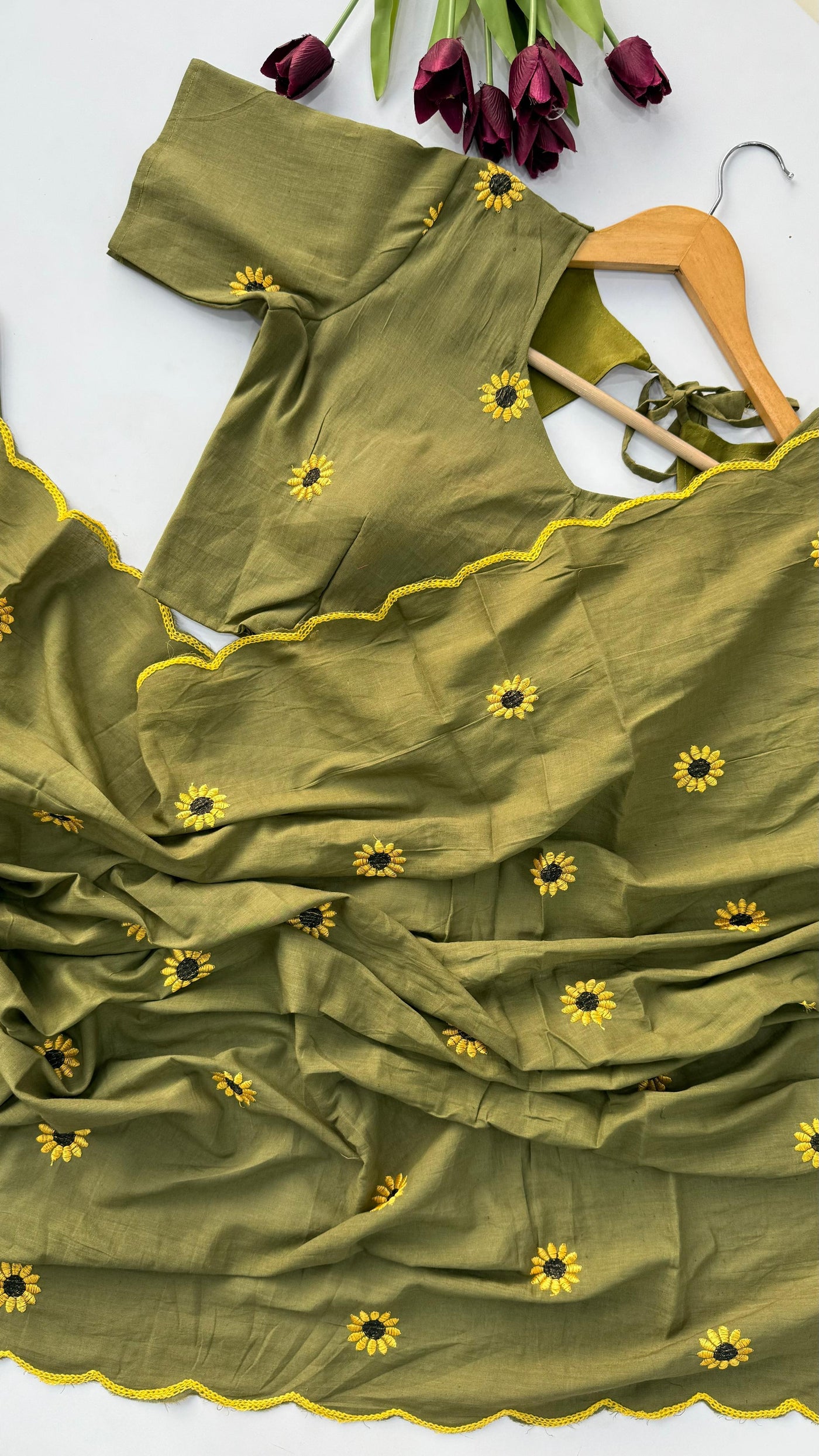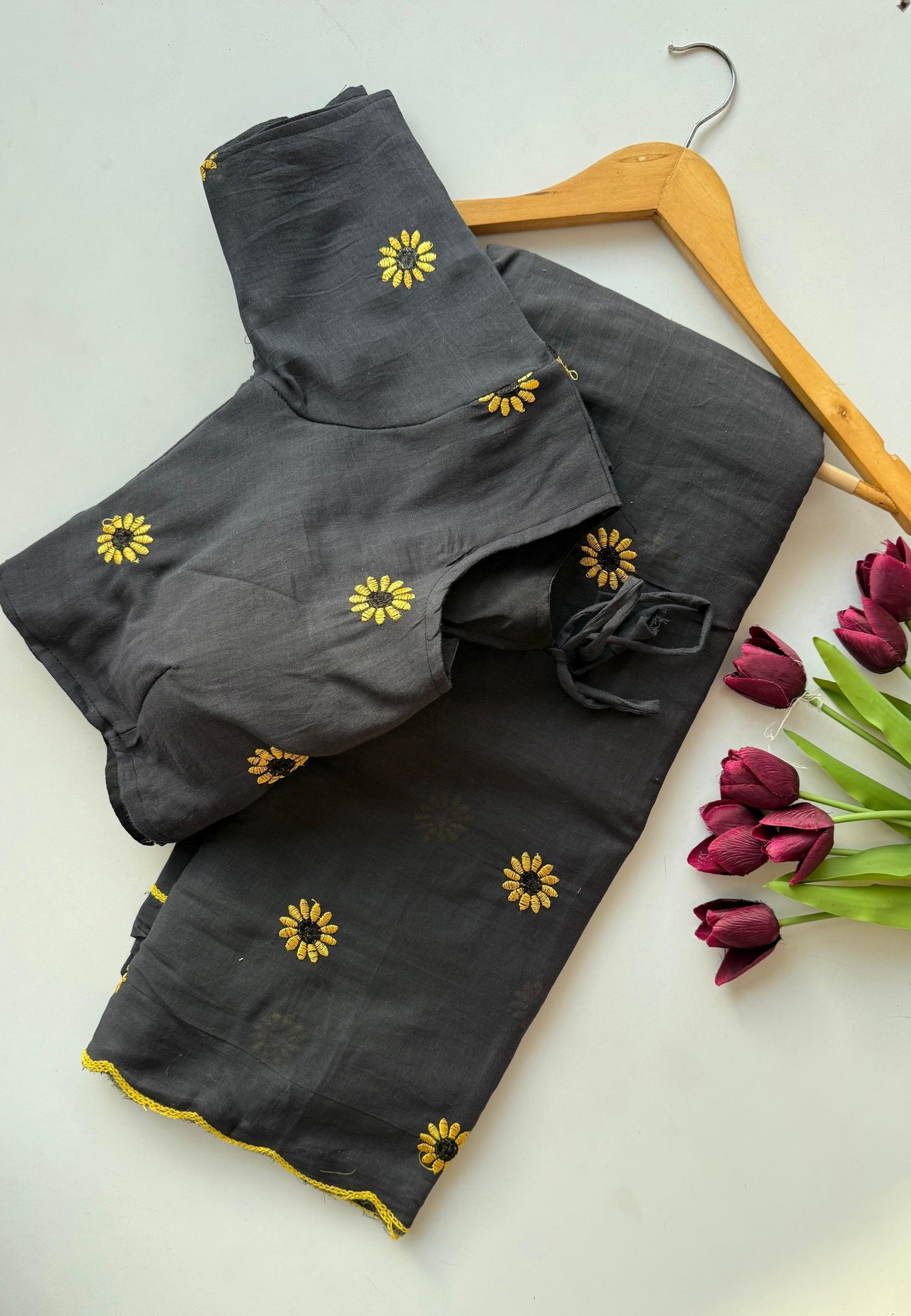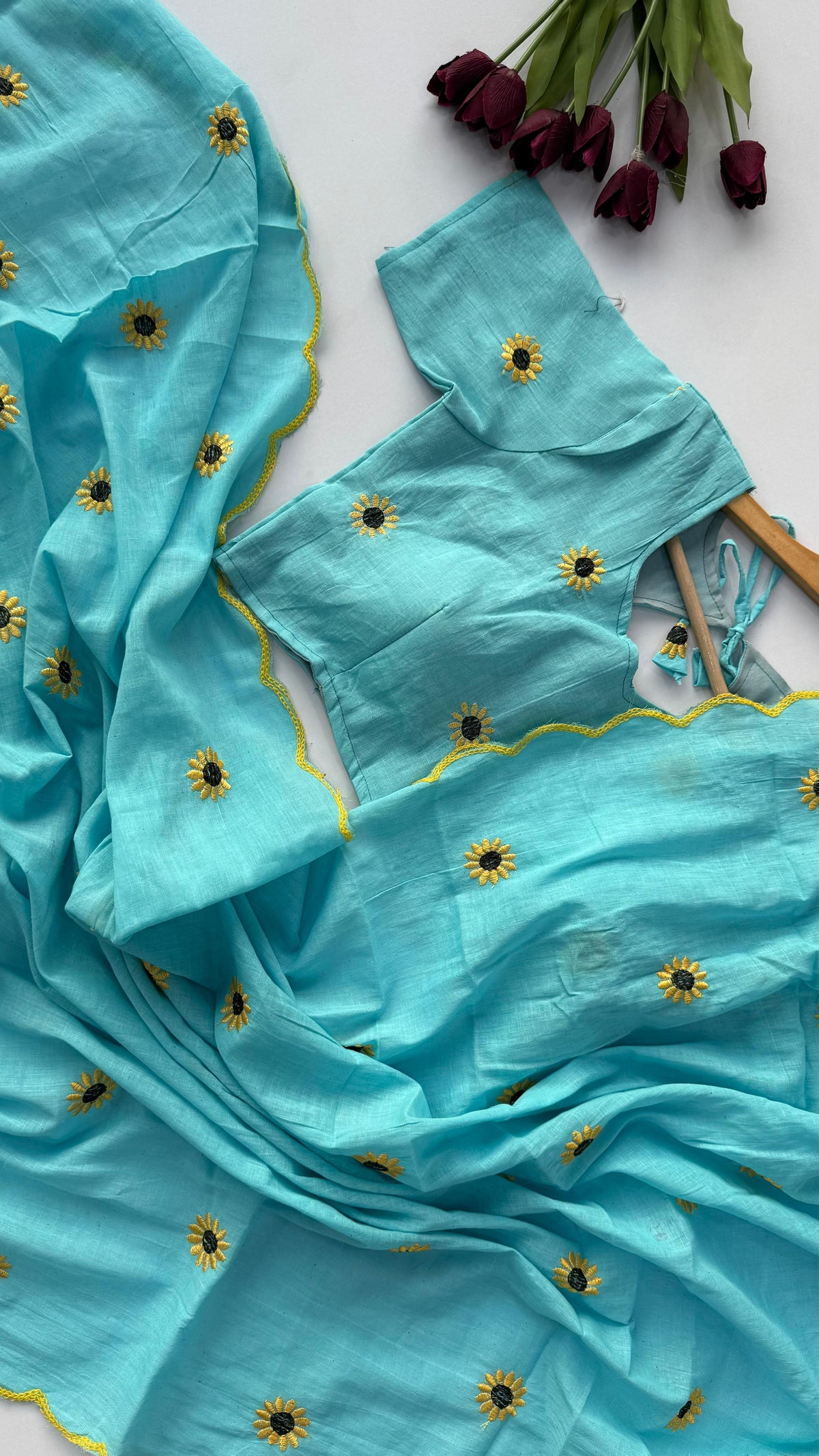 heavy pure cotton saree with complete flower work on the saree with thread work on the border and palla
