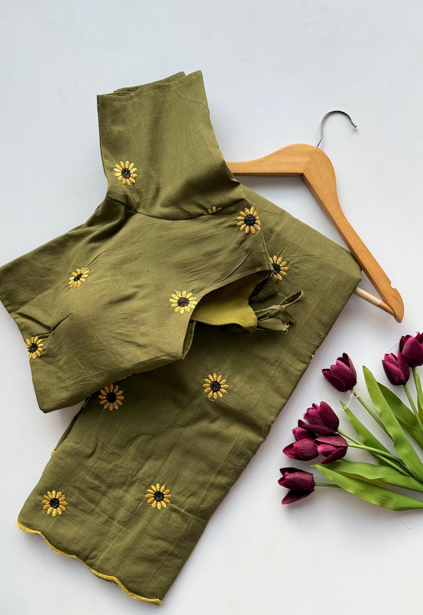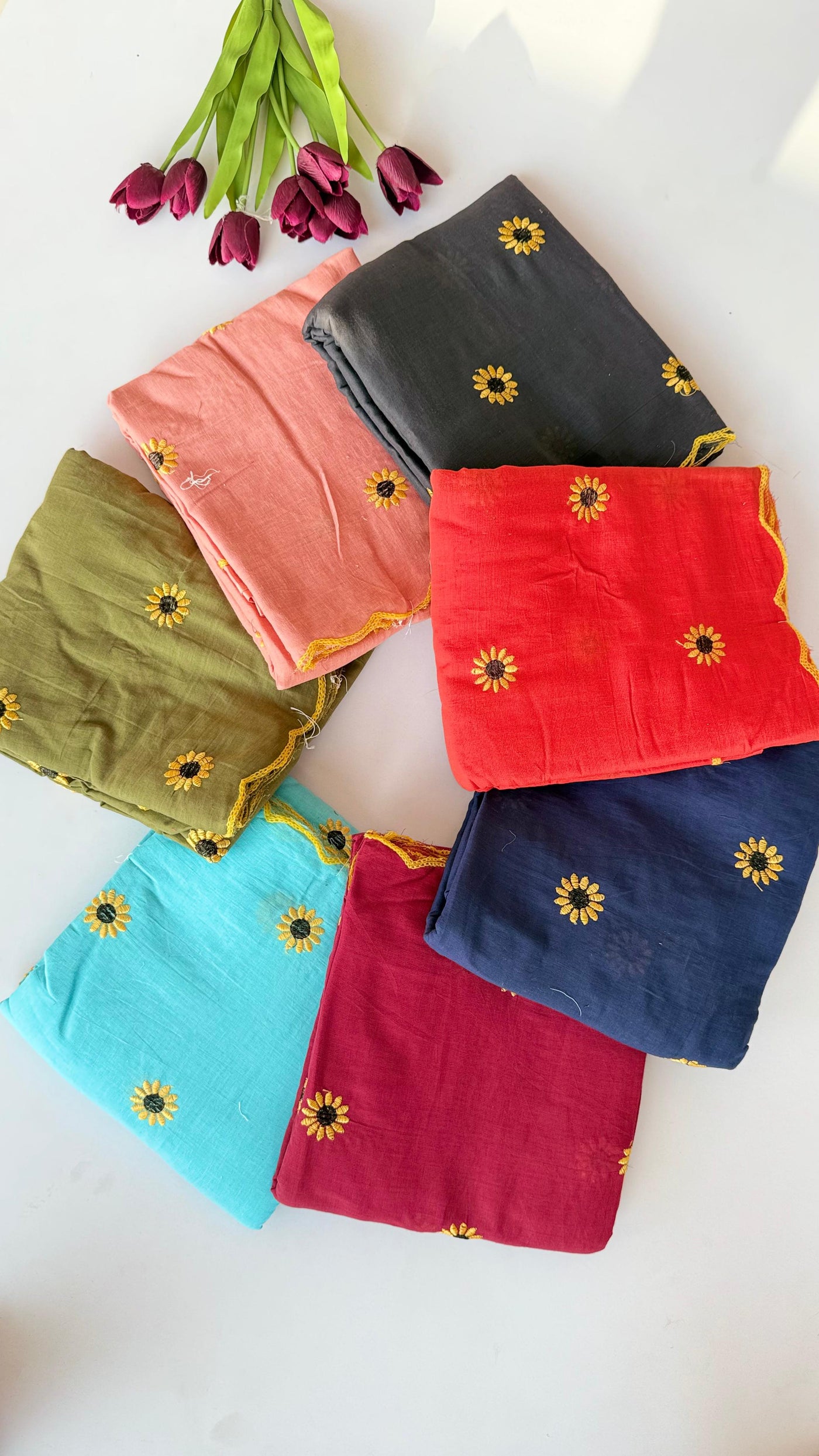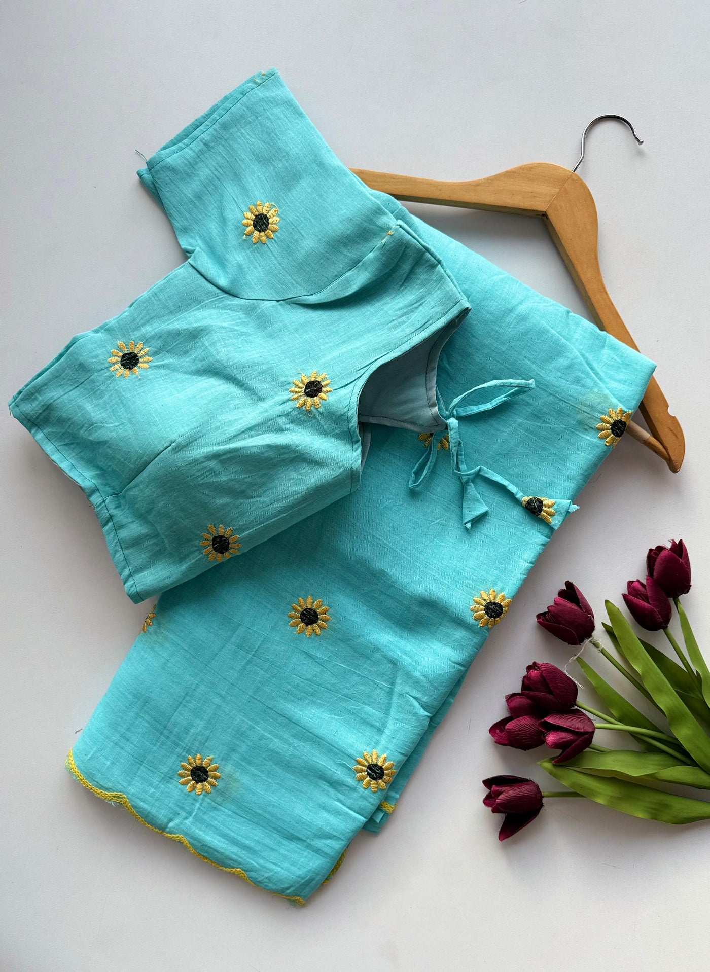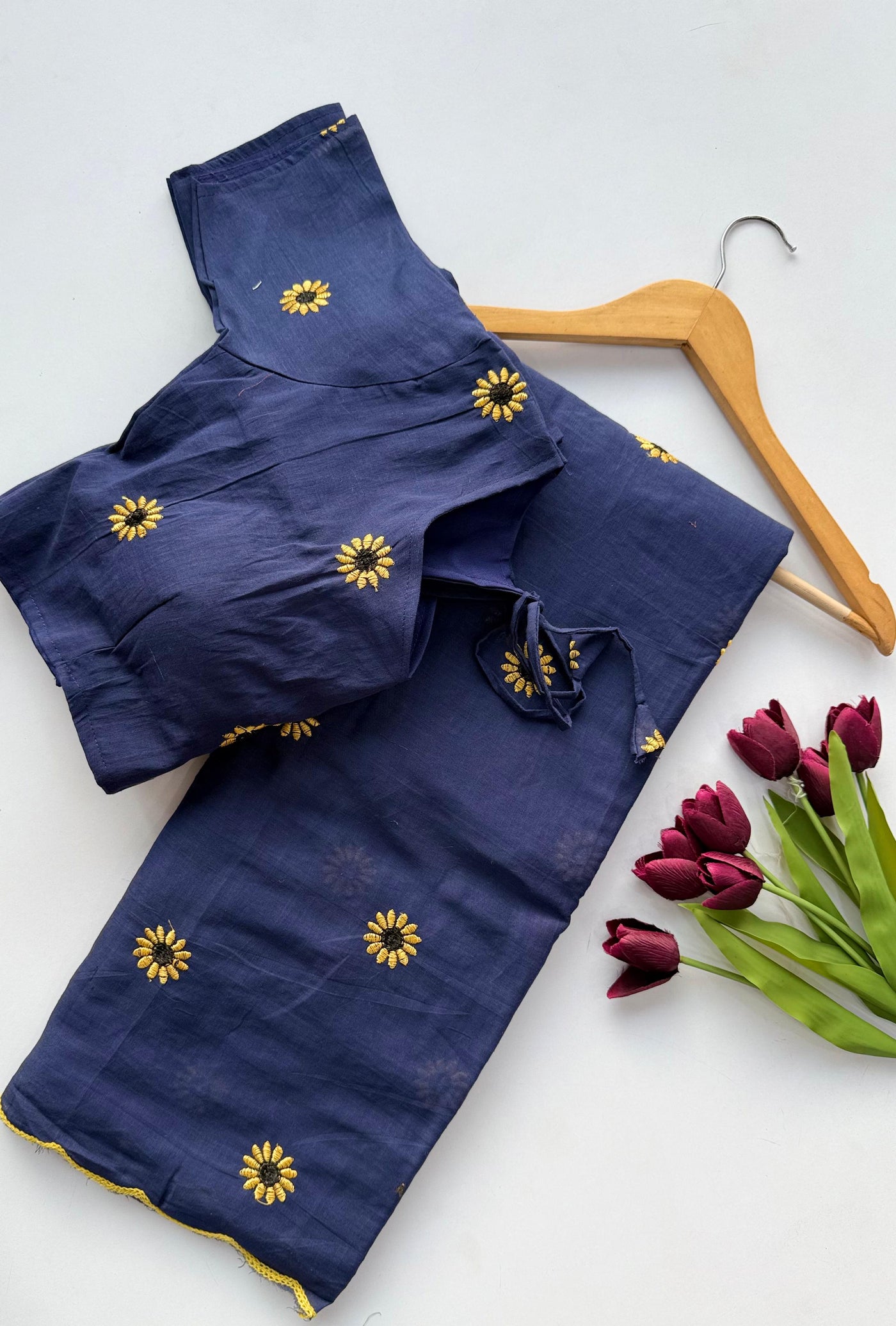 heavy pure cotton saree with complete flower work on the saree with thread work on the border and palla