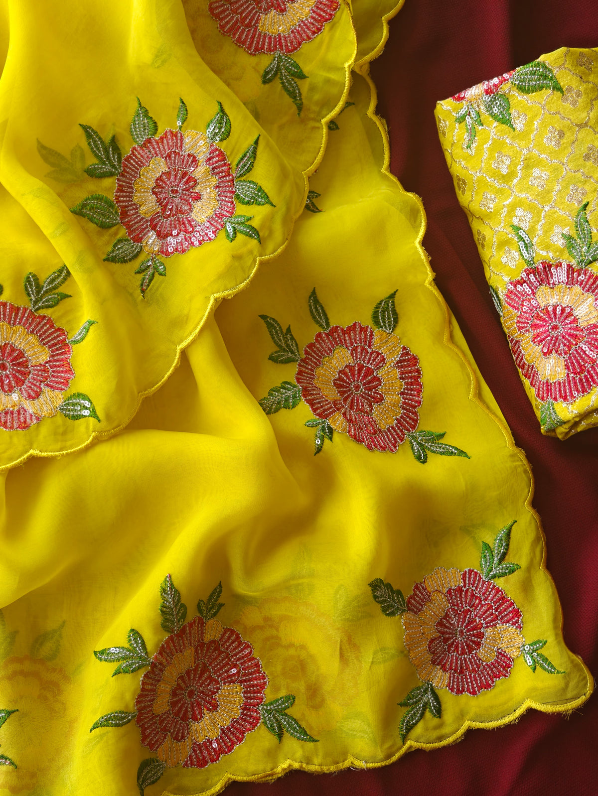 🥻👉🏻 Pure organza sarees with intricate floral embroidery with sequins C-Pallu pattern and cutwork border all over.